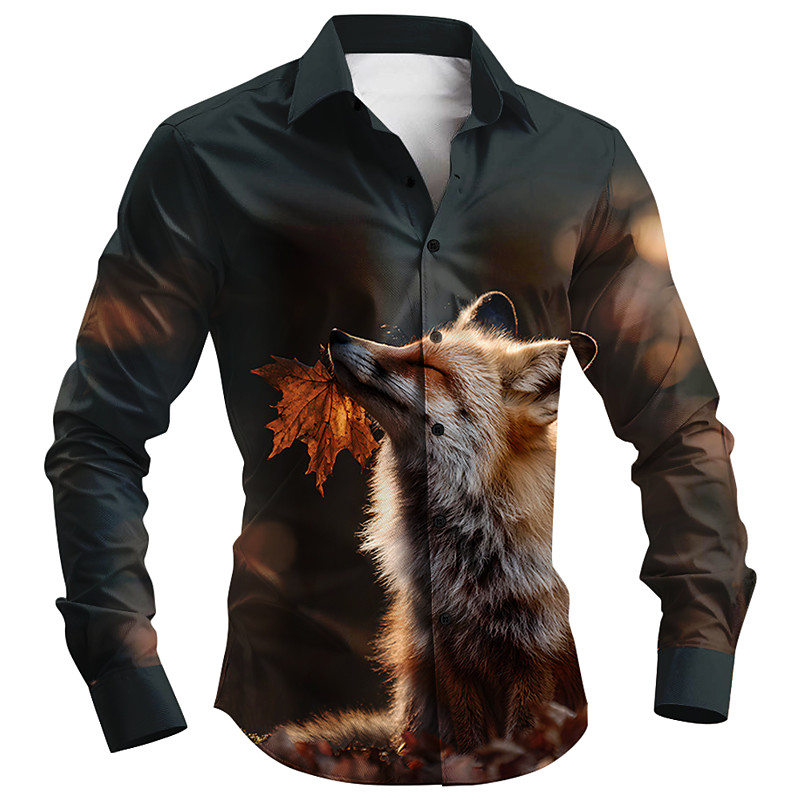 Men's Animal Fox Nature Landscapes Shirt Button Up Shirt Long Sleeve Vintage Retro Outdoor Casual Hunting Spring Fall Turndown 3D Print Collared Shirts White Dark Green Green
