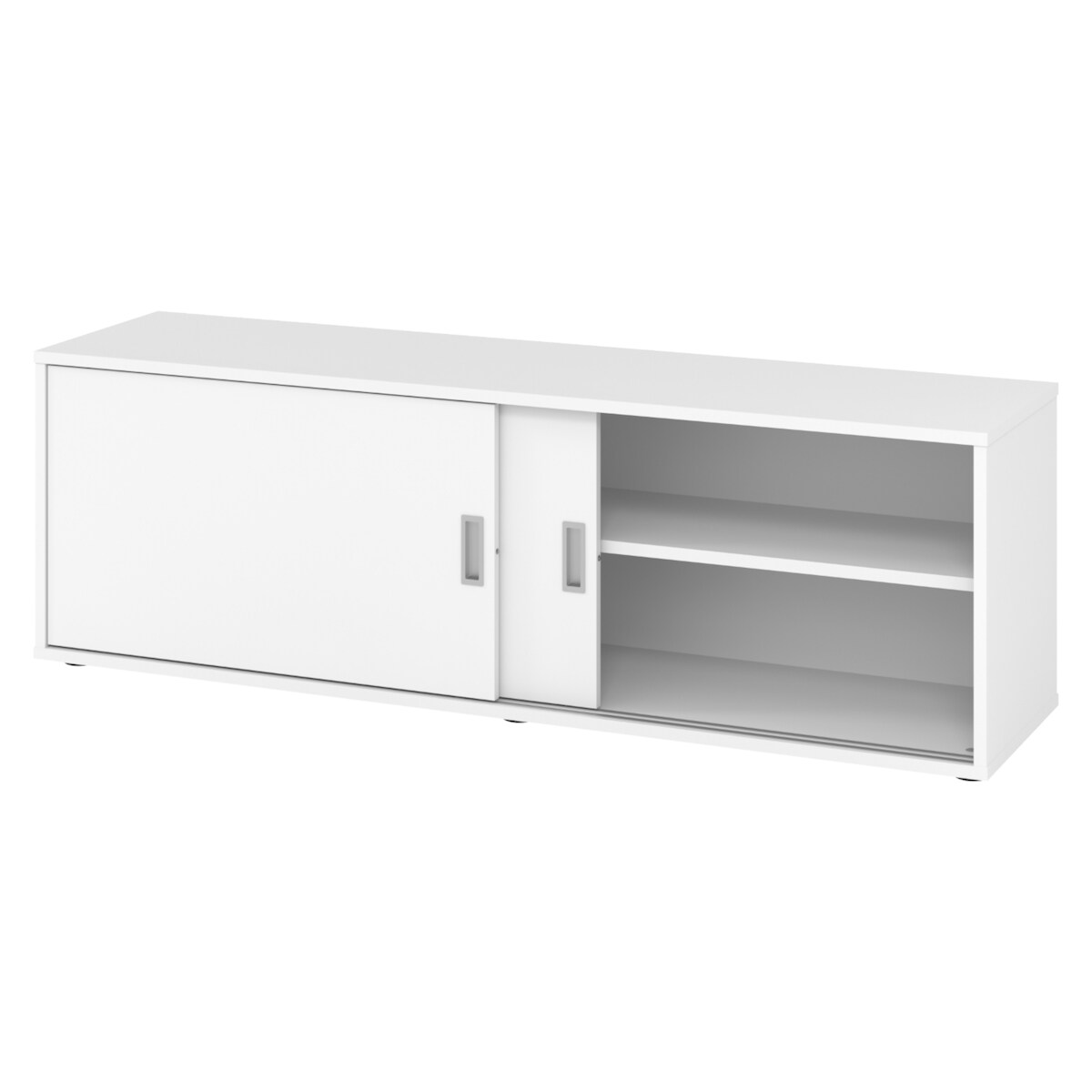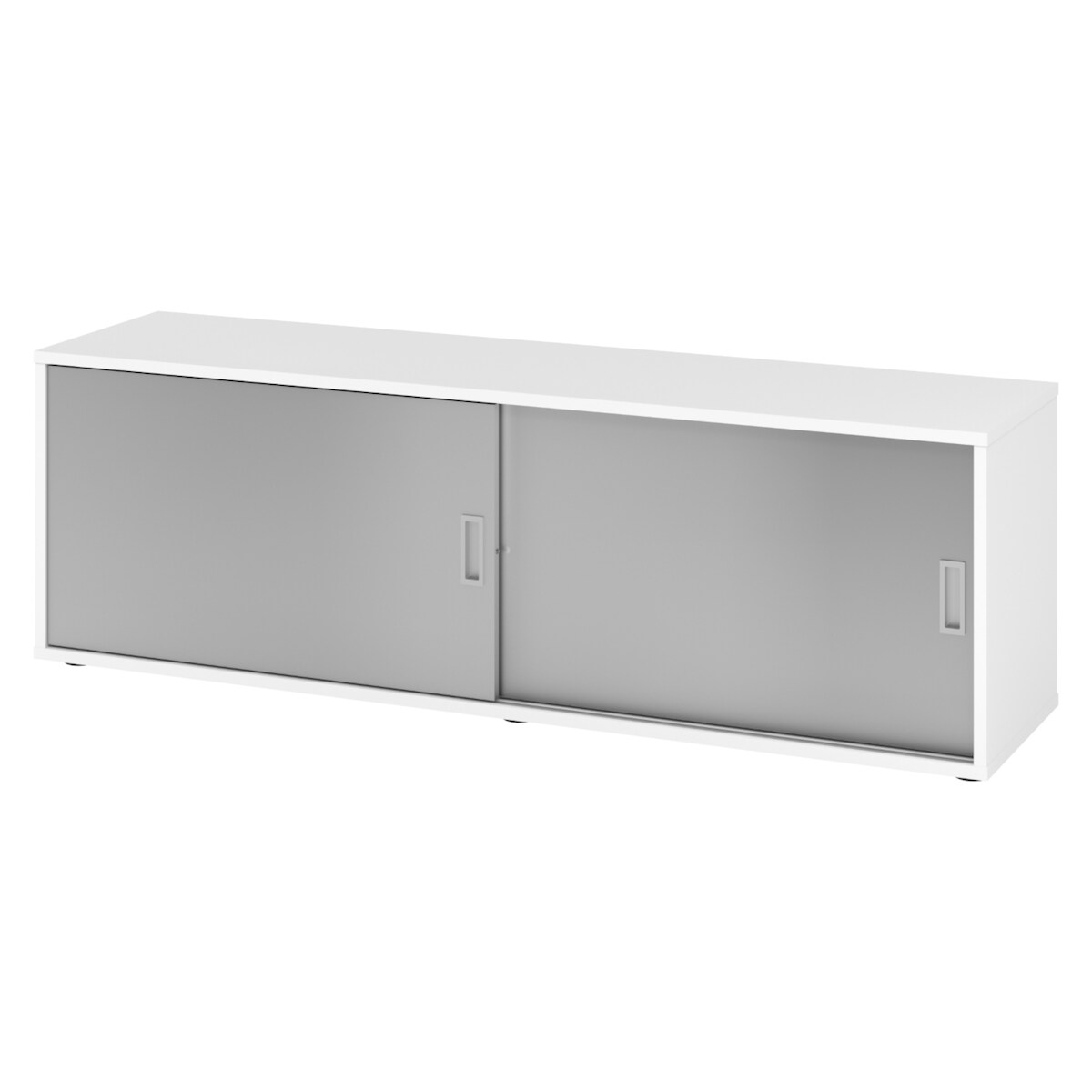bümö Lowboard Schiebetürenschrank in Weiß/Silber - Büromöbel Sideboard aus Holz, 160 cm breit, Büroschrank nur 40 cm schmal, Büro Schrank mit
