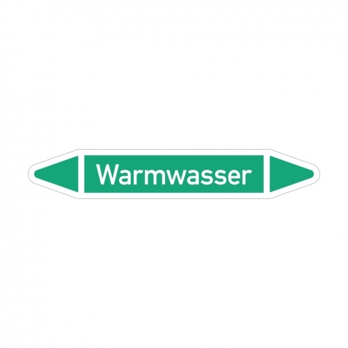 Aufkleber I RKZ-Etikett Warmwasser,DIN 2403,grün/weiß,für Ø 40-60mm,218x37mm,5/Bogen