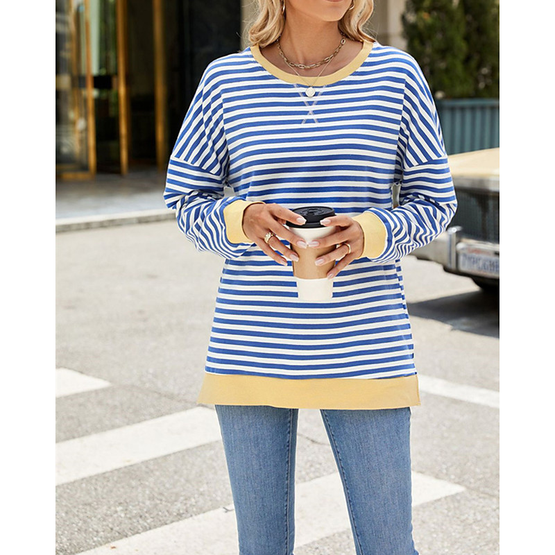 Women's T Shirt Striped Fashion Stylish Classic Long Sleeve Crew Neck Regular Tops Daily Weekend Print Blue Black Yellow Green Beige Summer Spring Fall