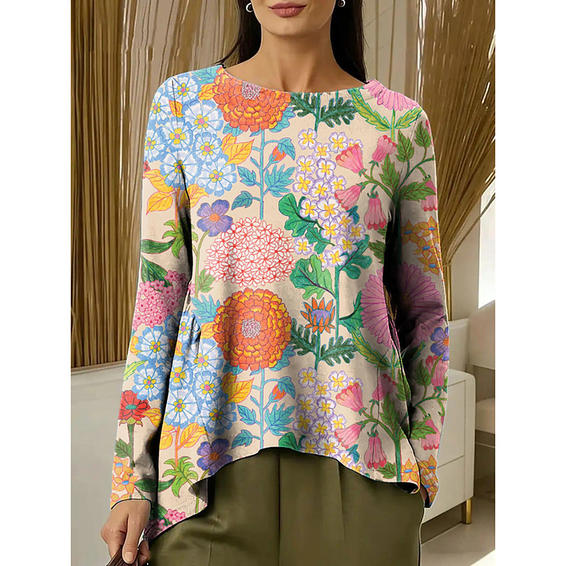 Women's Tunic T Shirt Floral Graphic Elegant Stylish Basic Long Sleeve Crew Neck Long Tops Daily Pink Orange Green Beige Spring Fall Winter
