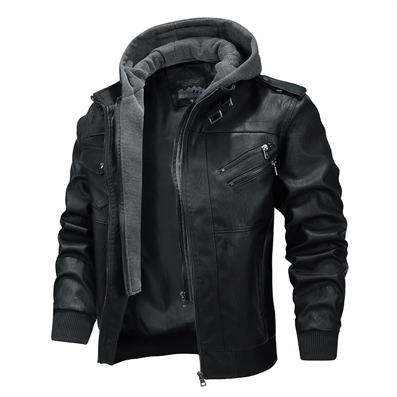 Men's Faux Leather Jacket Biker Jacket Motorcycle Jacket Vacation Daily Windproof Warm Pocket Fall Winter Plain Fashion Classic Hooded Regular Black Coffee Jacket