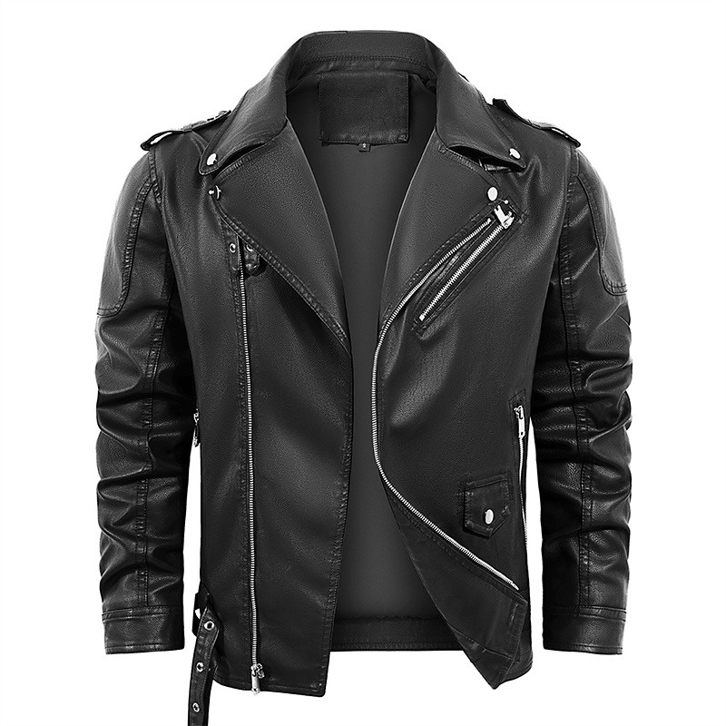 Per uomo Giacca in Ecopelle Giacca da Biker Giacca da Moto Vacanza Quotidiano Antivento Caldo Tasca Autunno Inverno Semplice Moda Classico Bavero Regolare Nero Giacca