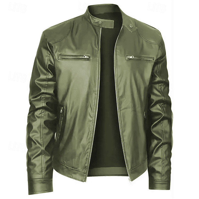Men's Faux Leather Jacket Biker Jacket Motorcycle Jacket Vacation Daily Windproof Warm Zipper Fall Winter Plain Fashion Classic Stand Collar Regular Black Red Royal Blue Blue Dark Green Jacket