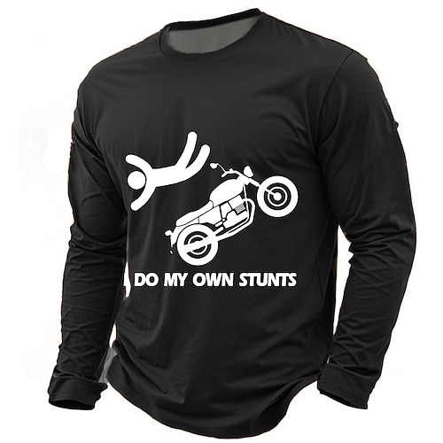 Lustiges Motorrad-T-Shirt für Männer Mach meine eigenen Stunts langärmeliges Grafikhemd - Biker-Humor