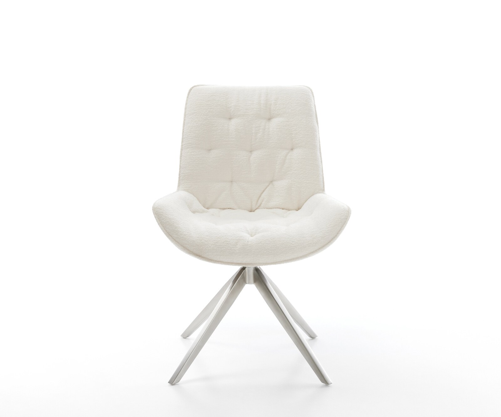 DELIFE Draaistoel Taimi-Flex bouclé zacht beige kruisframe breed roestvrij staal 360° draaibaar rocker-functie