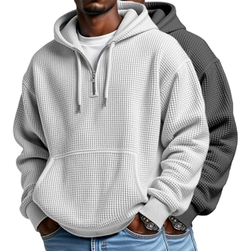 Men's Hoodie Waffle Hoodies Pullover Hoodie Sweatshirt Quarter Zip Hoodie Dark GrayRed Dark GrayLight Gray Dark GrayNavy Blue Light GreenNavy Blue RedApricot Hooded Plain Kangaroo Pocket Textured