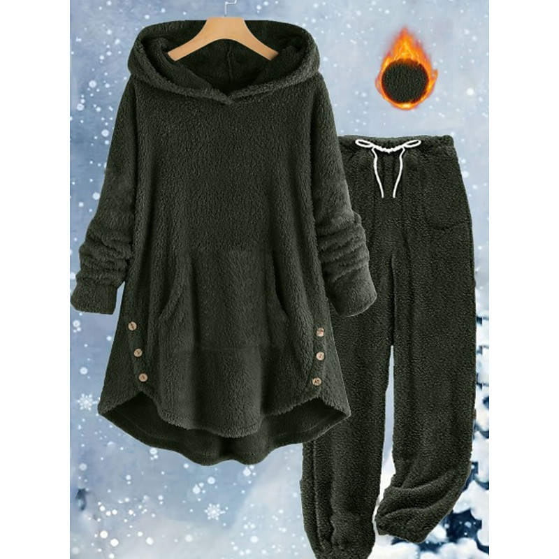 Women's Fashion Streetwear Daily Pants Sets Long Sleeve Hooded Plain Casual Daily Black White Yellow Spring Loose Fit