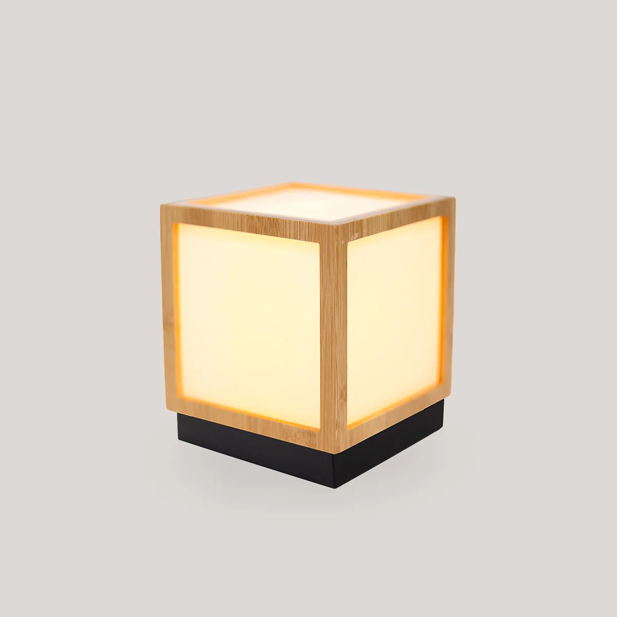 New Garden Vega - Aufladbare Tischlampe mit Solarbetrieb und Fernbedienung - 12 x 12 x 14 cm - 3W LED inkl. - IP44 - Bambus