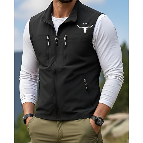 Per uomo Gilet Gilet da pesca All'aperto Quotidiano Moda Casual Primavera Autunno Cerniera Tasca Stampato Poliestere Confortevole Mucca Monopetto Un Bottone Collo alla coreana Vestibilità regolare