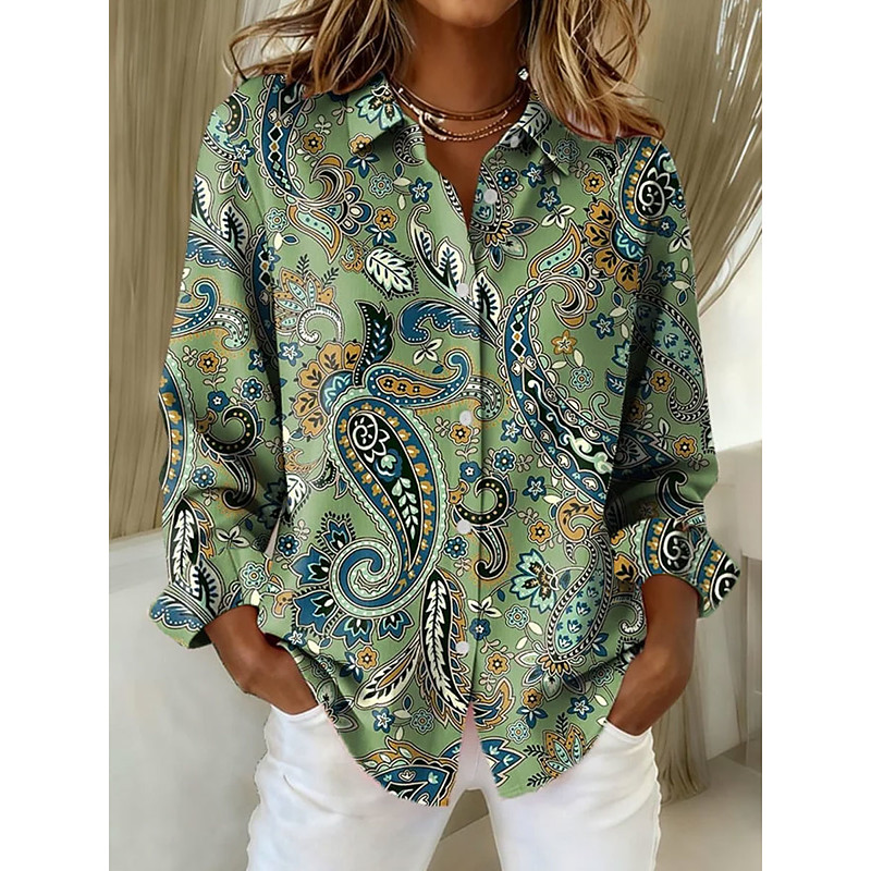 Women's Shirt Blouse Paisley Elegant Stylish Modern Long Sleeve Shirt Collar Regular Tops Work Print Pink Red Green Summer Spring Fall Winter