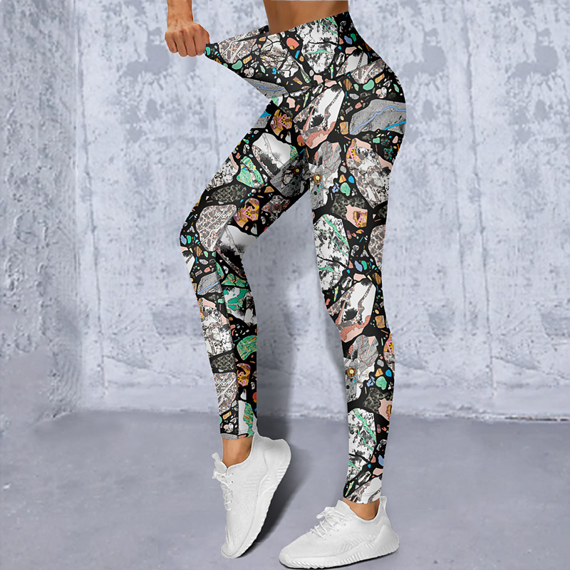 Women's Leggings Sports Gym Leggings Yoga Pants Spandex Green Gray Dark Green Cropped Leggings Geometry Tummy Control Butt Lift Clothing Clothes Yoga Fitness Gym Workout Running / High Elasticity