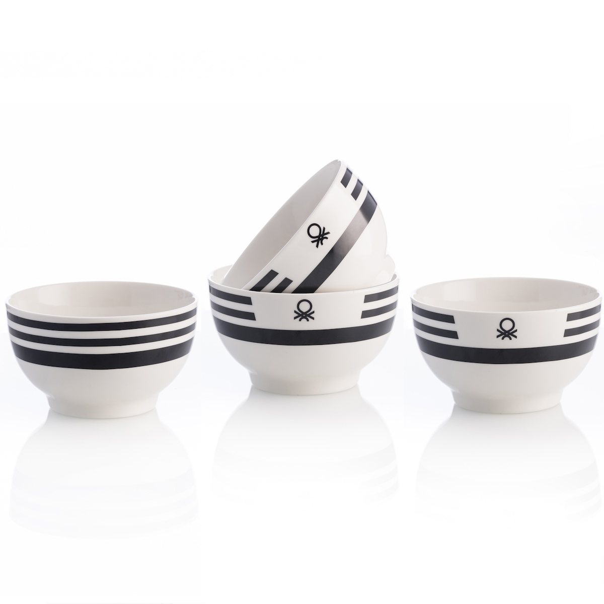Benetton - Set mit 4 Schüsseln, 650 ml, Bone China, schwarz, bedrucktes Logo-Design