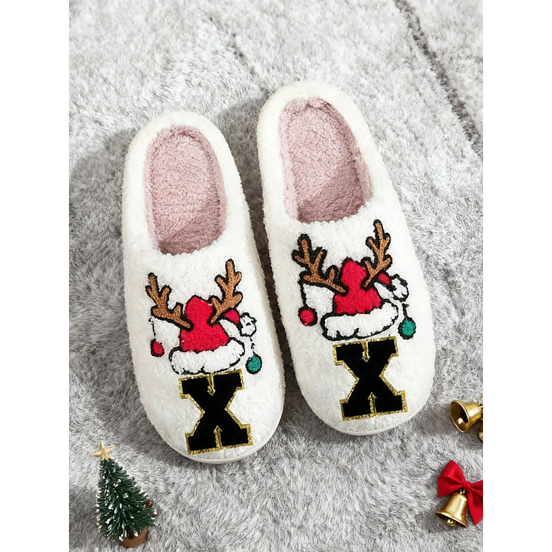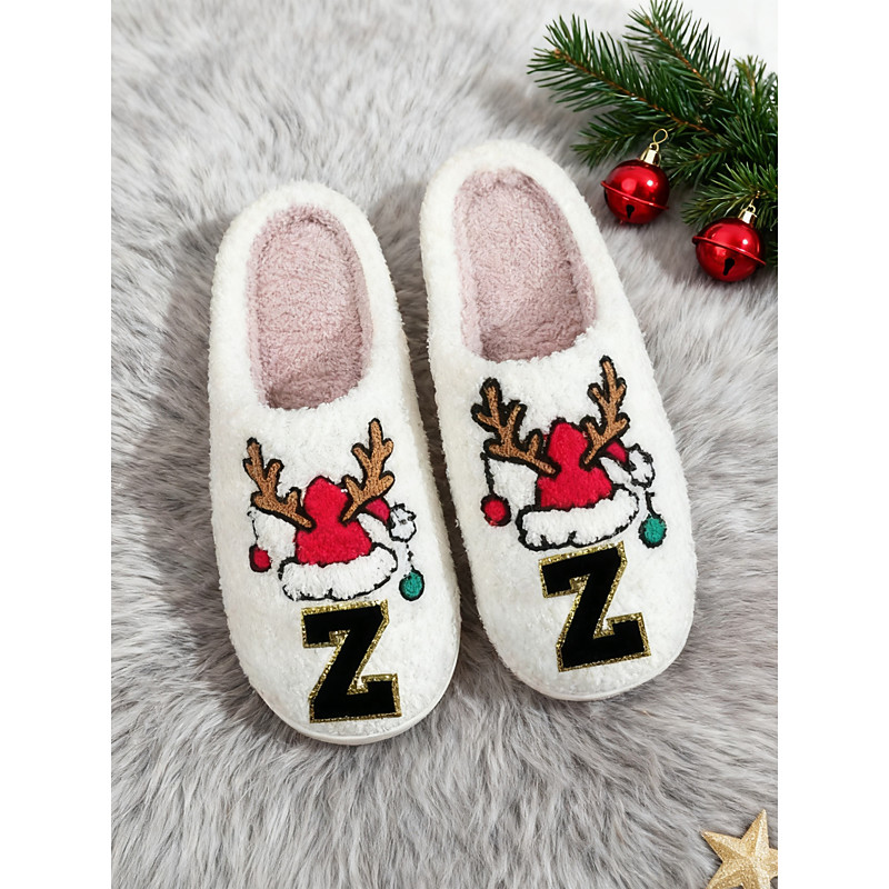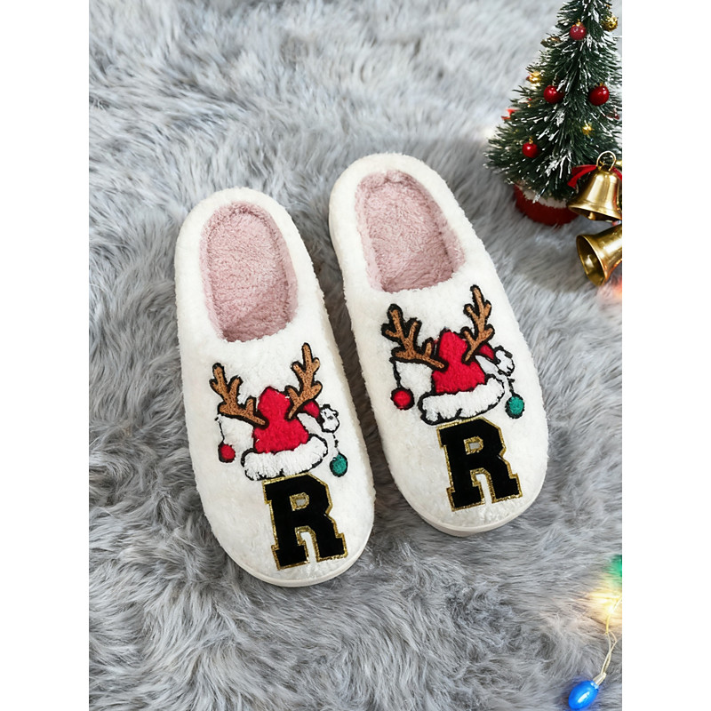 Women's Cozy Christmas Slippers with Reindeer Design – Soft Slippers with 26 Letters to Choose, Holiday Themed, Perfect for Lounging Gift Giving