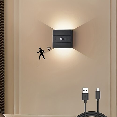Luce notturna intelligente con sensore di movimento ricaricabile tramite USB, lampada da parete con clip magnetica, luminosità regolabile, non necessita di cablaggio, luce LED per interni per camera