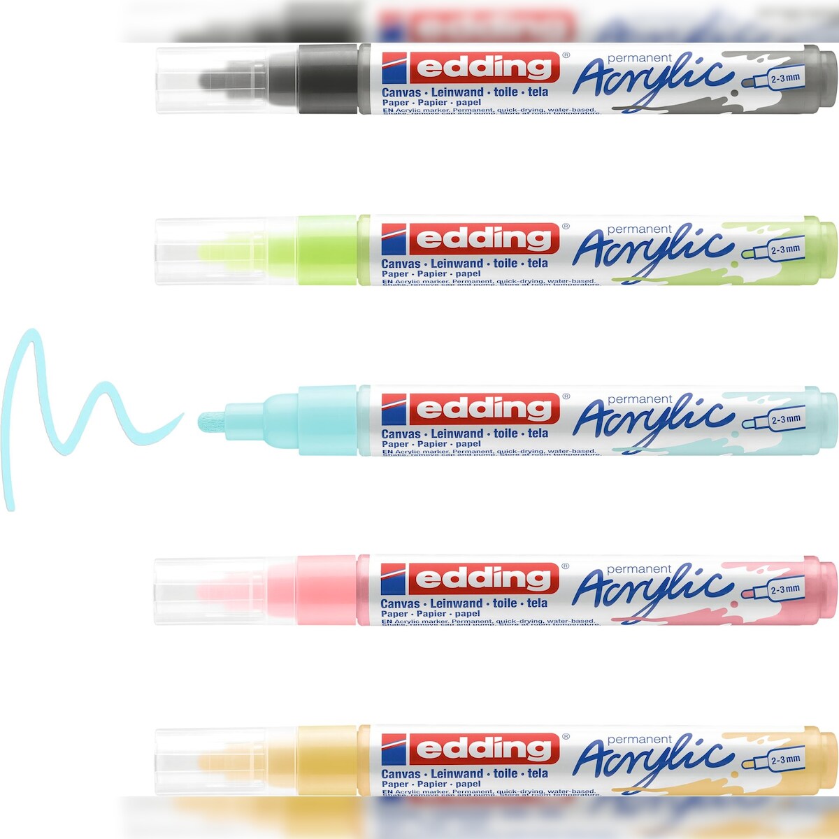Acrylmarker edding 5100 medium 5er-Set sortiert pastell Packung mit 8 Stück