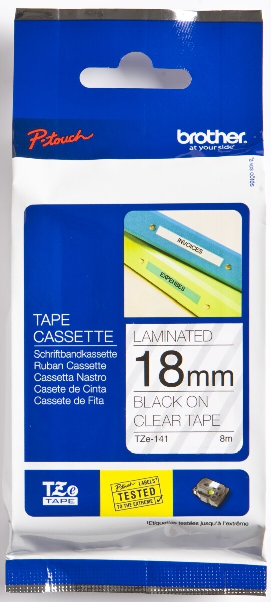 Brother Schriftband TZE141 18mm schwarz/transparent Packung mit 25 Stück