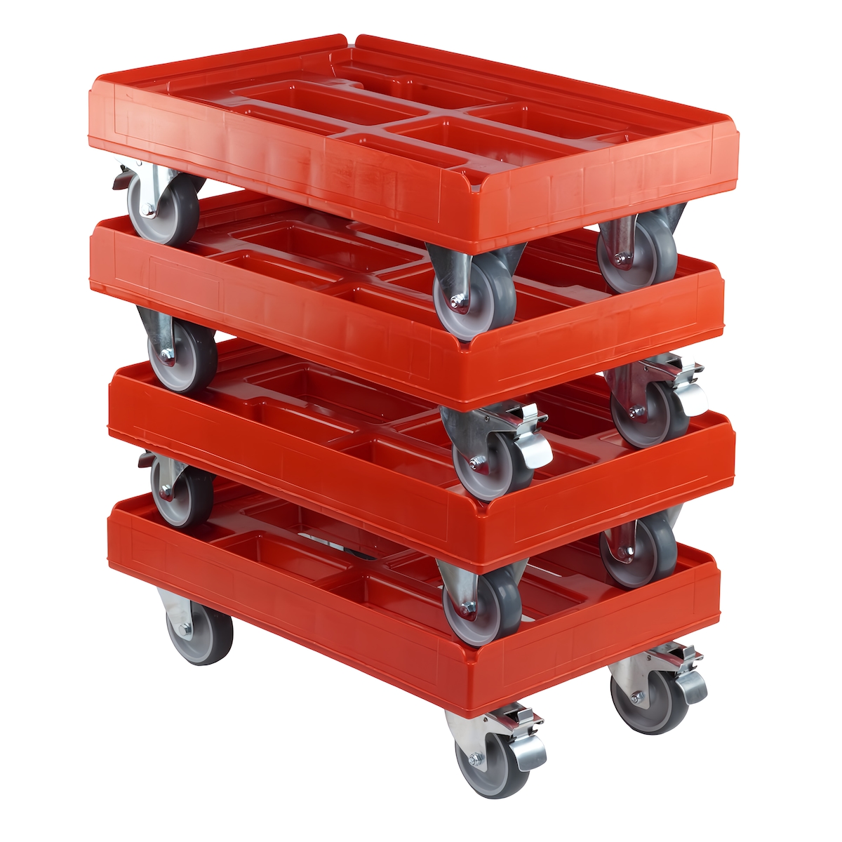4 Stück Hygiene Transportroller für Kisten 60 x 40 cm mit 2 Bockrollen und 2 Lenkrollen mit Bremse in Rot