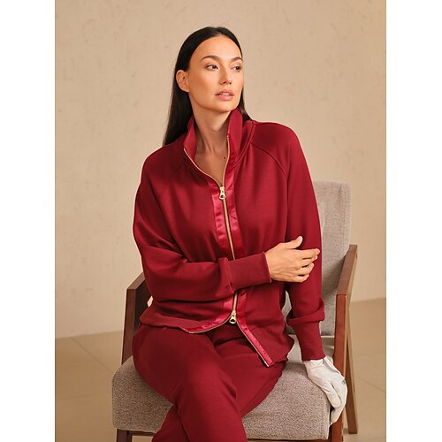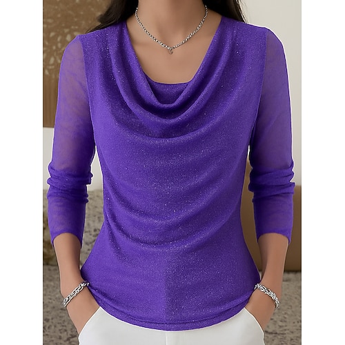 Per donna Blusa Tinta unica Elegante Casual Manica Lunga Girocollo Top Regolari Quotidiano Patchwork Glitter Nero Vino Blu Verde Primavera Autunno Inverno