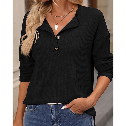 Per donna Maglietta Semplice Casual Manica Lunga Girocollo Top Regolari Quotidiano Uscire Weekend Bottoni Nero Rosa Verde militare Marrone Cachi Autunno Inverno