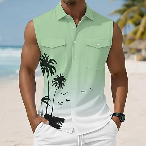 Per uomo Albero di Cocco Colore sfumato Piante Tropicali Camicia Camicia hawaiana estiva Camicia Aloha Senza Maniche Resort Vacanza al Mare Estate Primavera Collo ripiegato Stampa 3D Due tasche