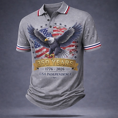 4. Juli 2026 250. Herren Veteranen Patriotisch Poloshirts Kurzarm Polo-Shirts Umlegekragen Lässig Täglich Strand Straße Ferien 3D Frühling Sommer Weiß Rote Marineblau