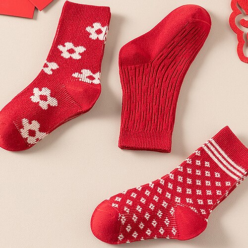 Kinder Jungen 3 Paare Weihnachten Weihnachtsgeschenk Socken Weiß Wein Rote Karomuster Jeder Druck Herbst Winter Alltagskleidung