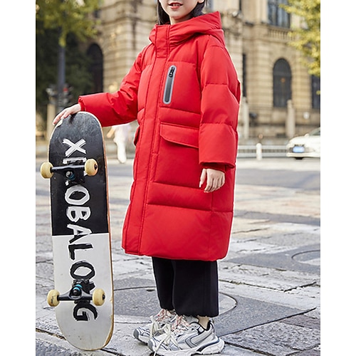 Kinder Mädchen Daunenjacke Daunenjacke Buchstabe Sport Tasche warm halten Winddicht Outdoor Mantel Oberbekleidung 4-12 Jahre Winter Schwarz Rote Beige