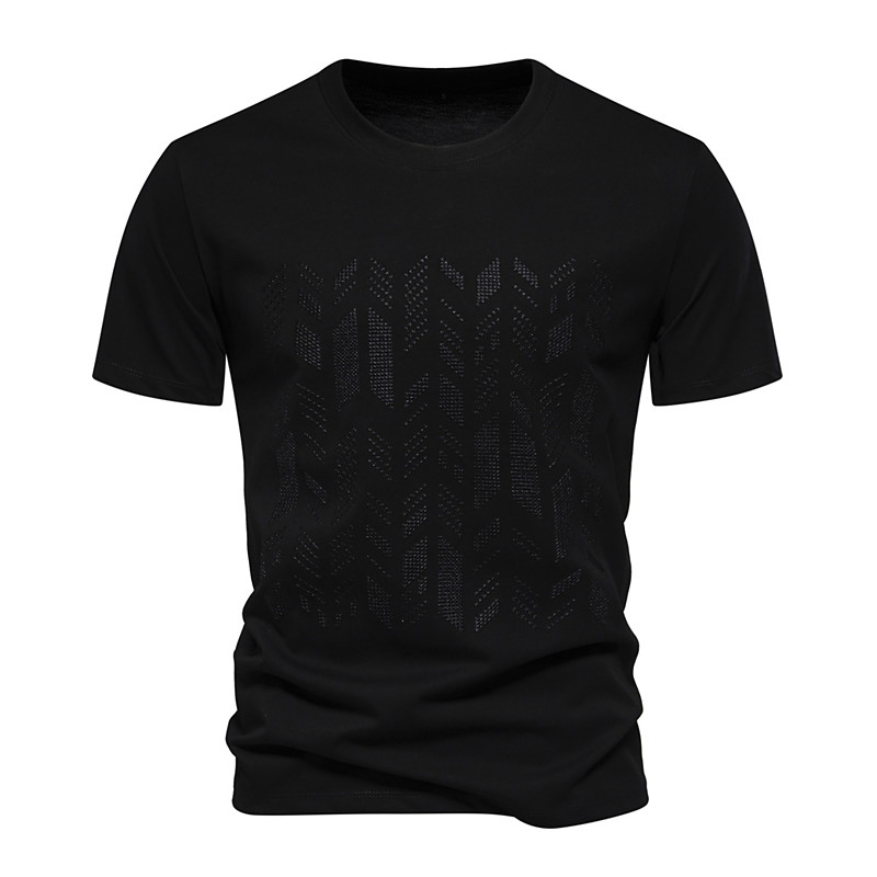 Men's T Shirt Short Sleeve Crew Neck Summer Spring Geometric Knitwear Vacation Vintage Embroidered Embroidery School Training Outdoor Black White Light Green Top Tee for Men