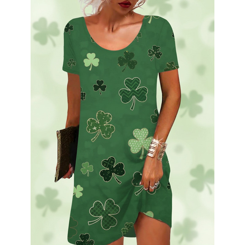 St. Paddy's Day Women's Mini Dress Casual Dress T Shirt Dress Tee Dress Fashion Modern Daily Outdoor St. Patrick's Day Regular Fit Graphic Clover Short Sleeve Crew Neck Light Green Army Green Dark