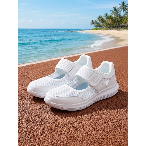 Scarpe da passeggio da donna bianche, leggere e facili da indossare: sneakers comode e traspiranti in maglia, ideali per viaggiare, per l'uso quotidiano e per il tempo libero.