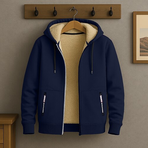 Per uomo Felpa con cappuccio a zip intera Felpa con cappuccio e zip Giacca in Pile Felpa con cappuccio in pile Aalbicocca Nero Vino Rosso Blu Con Cappuccio Semplice Stampe Grafiche Cerniera Tasca