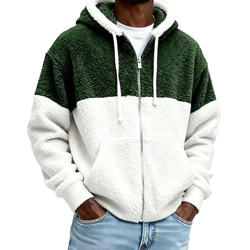 Per uomo Felpa con cappuccio Felpa con cappuccio a zip intera Felpa con cappuccio in pile Felpa con cappuccio foderata in pile Nero Verde chiaro Rosso Blu marino Verde scuro Con Cappuccio Blocco di