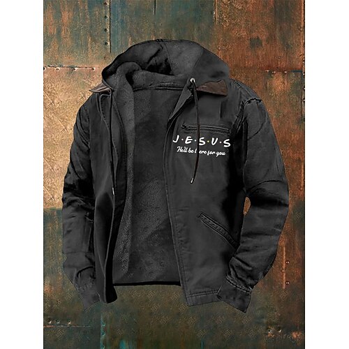 Per uomo Felpa con cappuccio a zip intera Giacca in Pile Felpa con cappuccio in pile Nero Marrone Con Cappuccio Lettera Tasca Stampato Casuale Quotidiano Uscire Poliestere Streetwear Retrò Casual
