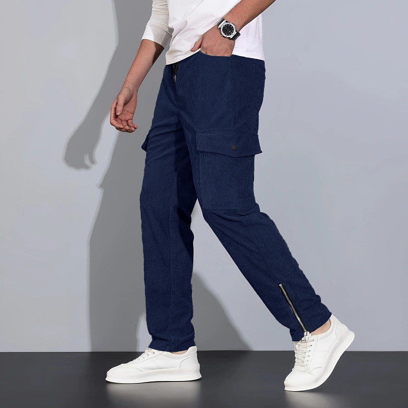 Men's Cargo Pants Trousers Corduroy Pants Slacks Baggy Pants Drawstring Front Pocket Plain Comfort Full Length Outdoor Home Party Vacation Fashion Black Navy Blue Micro-elastic