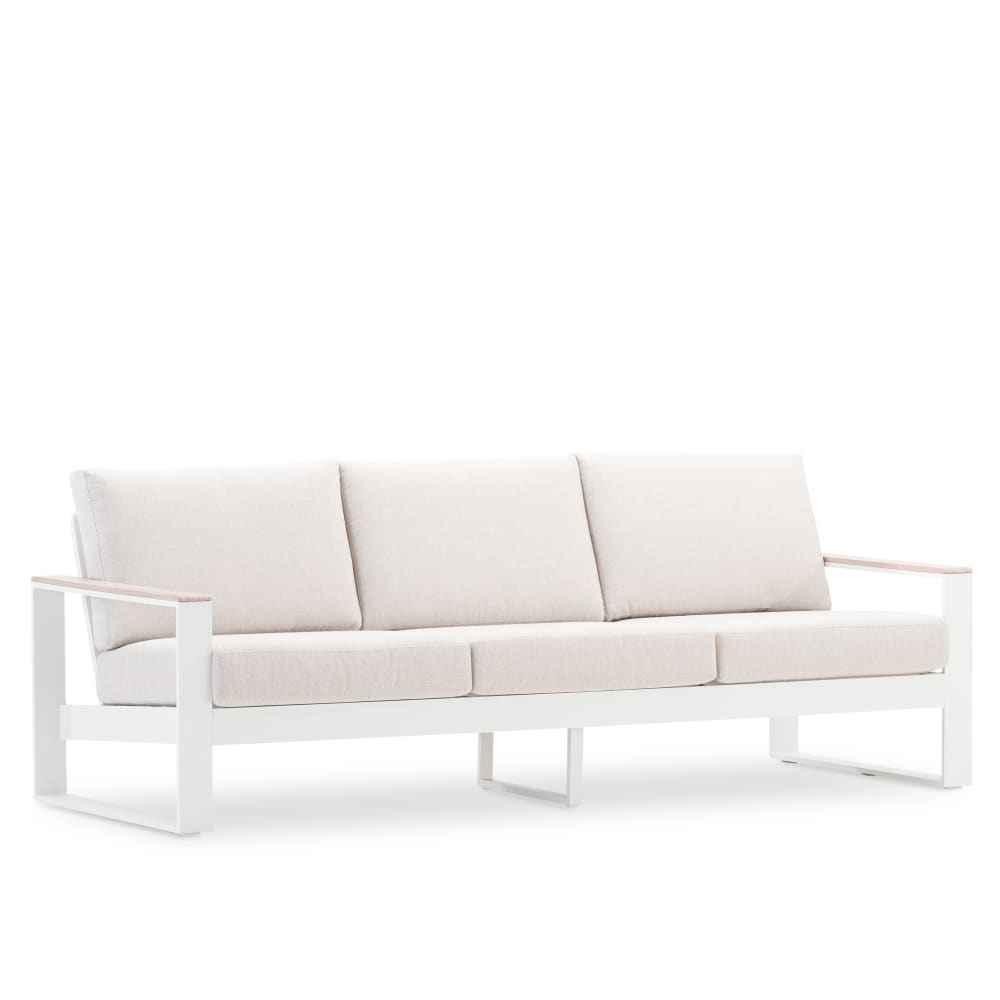 Divano giardino 3 posti alluminio bianco e braccioli effetto legno