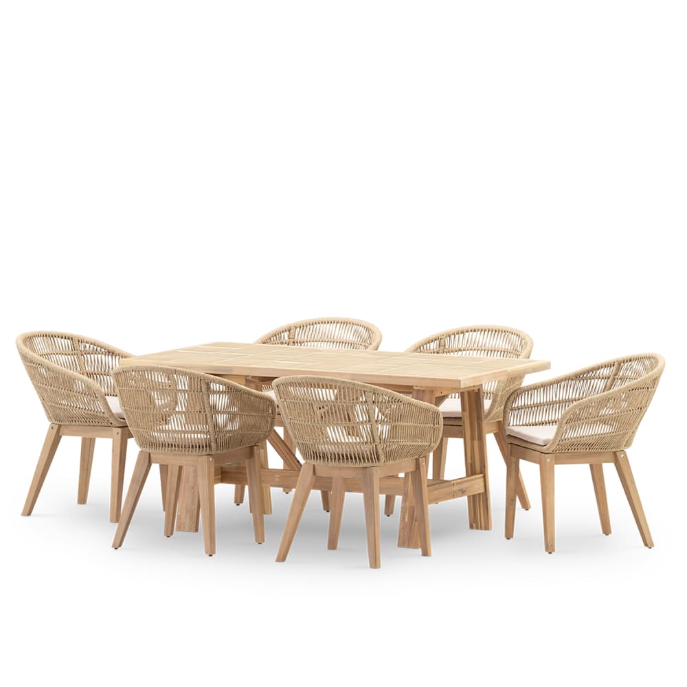Set da pranzo 6 posti tavolo ceramica beige 168x87