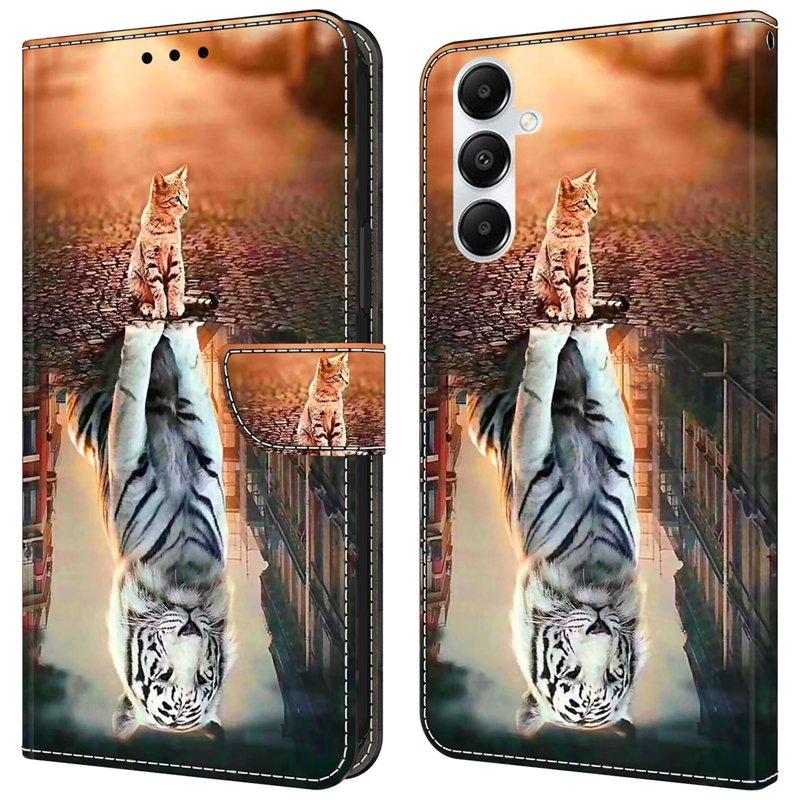Samsung Galaxy A35 5G Skal Äkta Läder 3D Mönster - Katt och Tiger