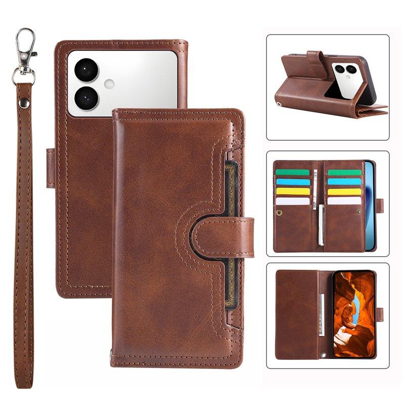 ABEEL Samsung Galaxy S26 Edge Plånboksfodral Äkta Läder Magnetiskt Skydd - Brun