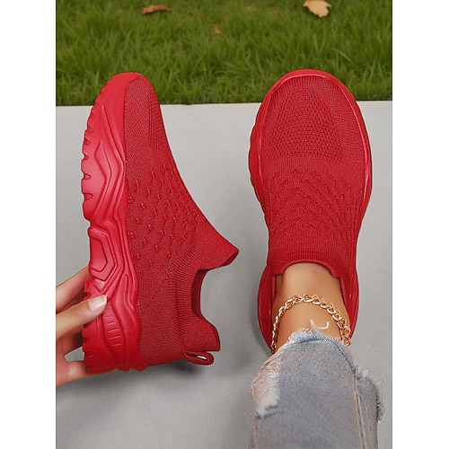 scarpe sportive slip-on da donna rosso brillante con maglia traspirante: sneakers leggere e comode per le attività quotidiane, i viaggi e le uscite informali