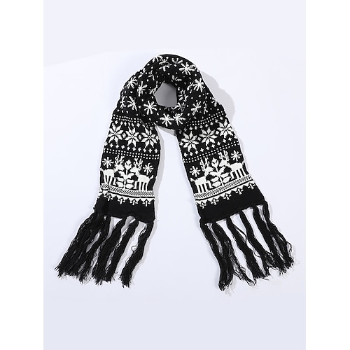 sciarpa natalizia da donna lavorata a maglia, materiale acrilico, motivo Fair Isle rosso e bianco con renne e fiocchi di neve, accessorio invernale festivo per le feste di Natale