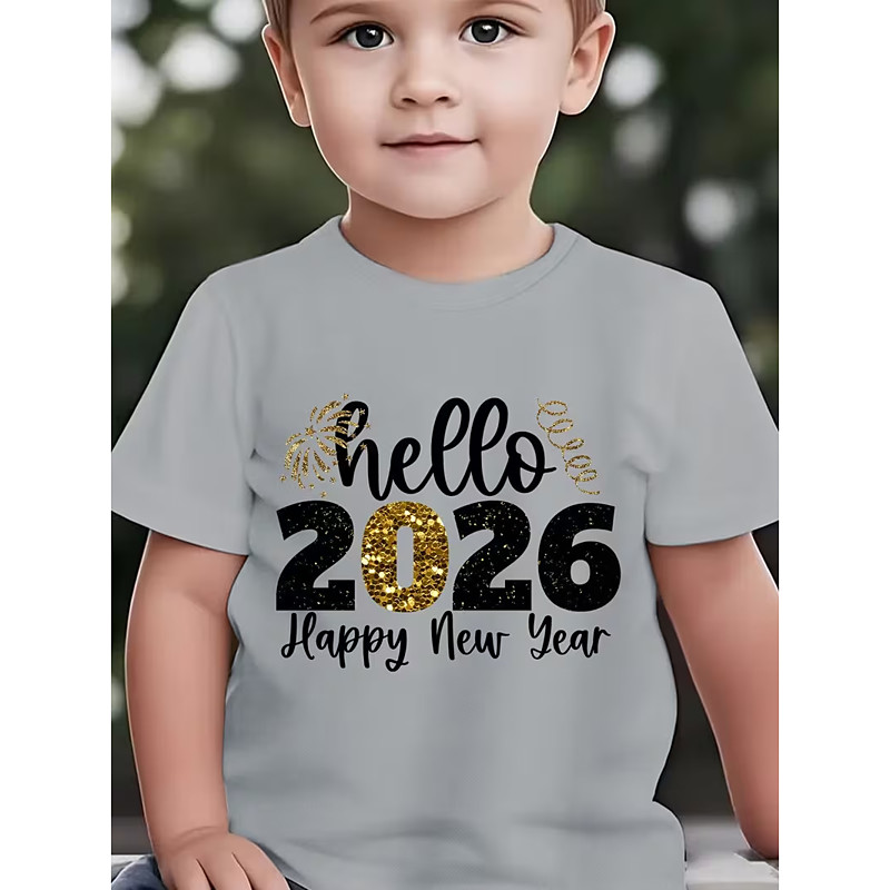 Boys' 3D 2026 New Year'S Party Graphic Letter T shirt Tee Short Sleeve 3D Print Summer Spring Sports Fashion Streetwear Kids 4-12 Years Crew Neck Outdoor Casual Daily Regular Fit