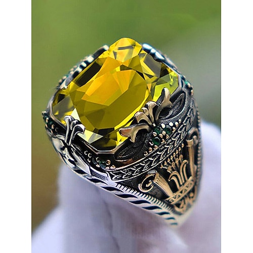 Herrenring aus Legierung mit Edelsteinen, Statement-Schmuck im Vintage-Stil mit großem Stein, mehrfarbiges Modeaccessoire, einzigartiges Weihnachtsgeschenk für Partys und den Alltag