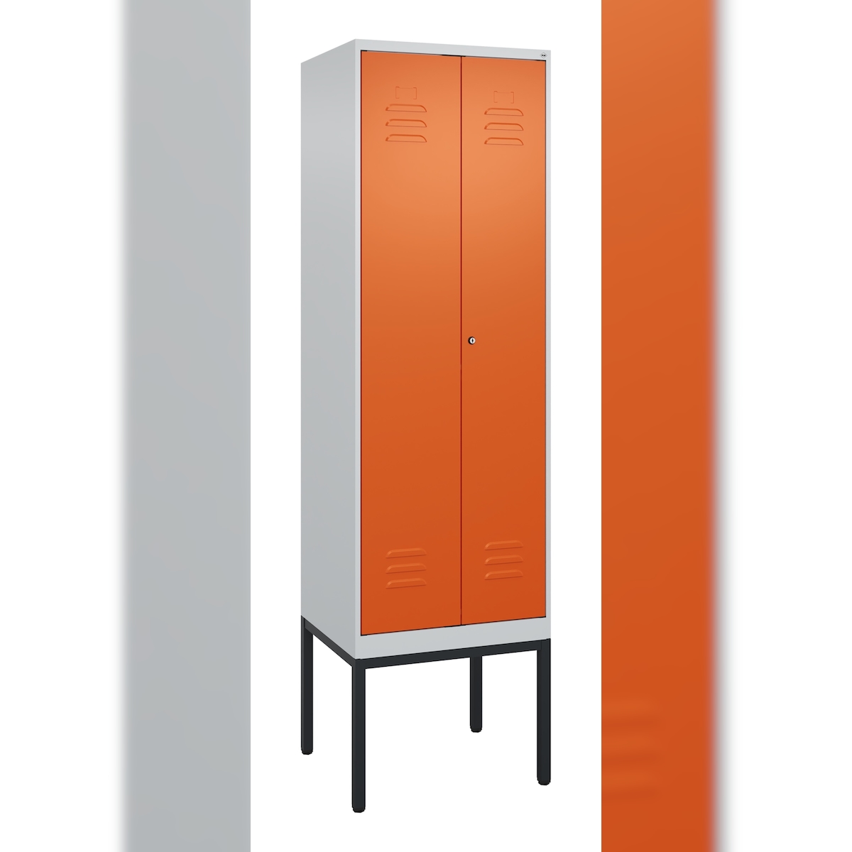 C+P Spind Classic PLUS, Füßen, 1 Abteil, HxBxT 195x40x50cm, Sicherheitsdrehriegel, Hellgrau/Reinorange von PROREGAL