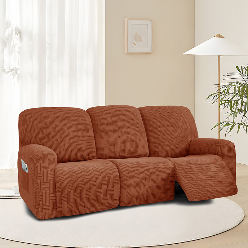 3-Seater Reclining Sofa Cover with 5x5 Grid Stitch Design - Three-Person Lounge Couch Cover with Low Back and Modern Style