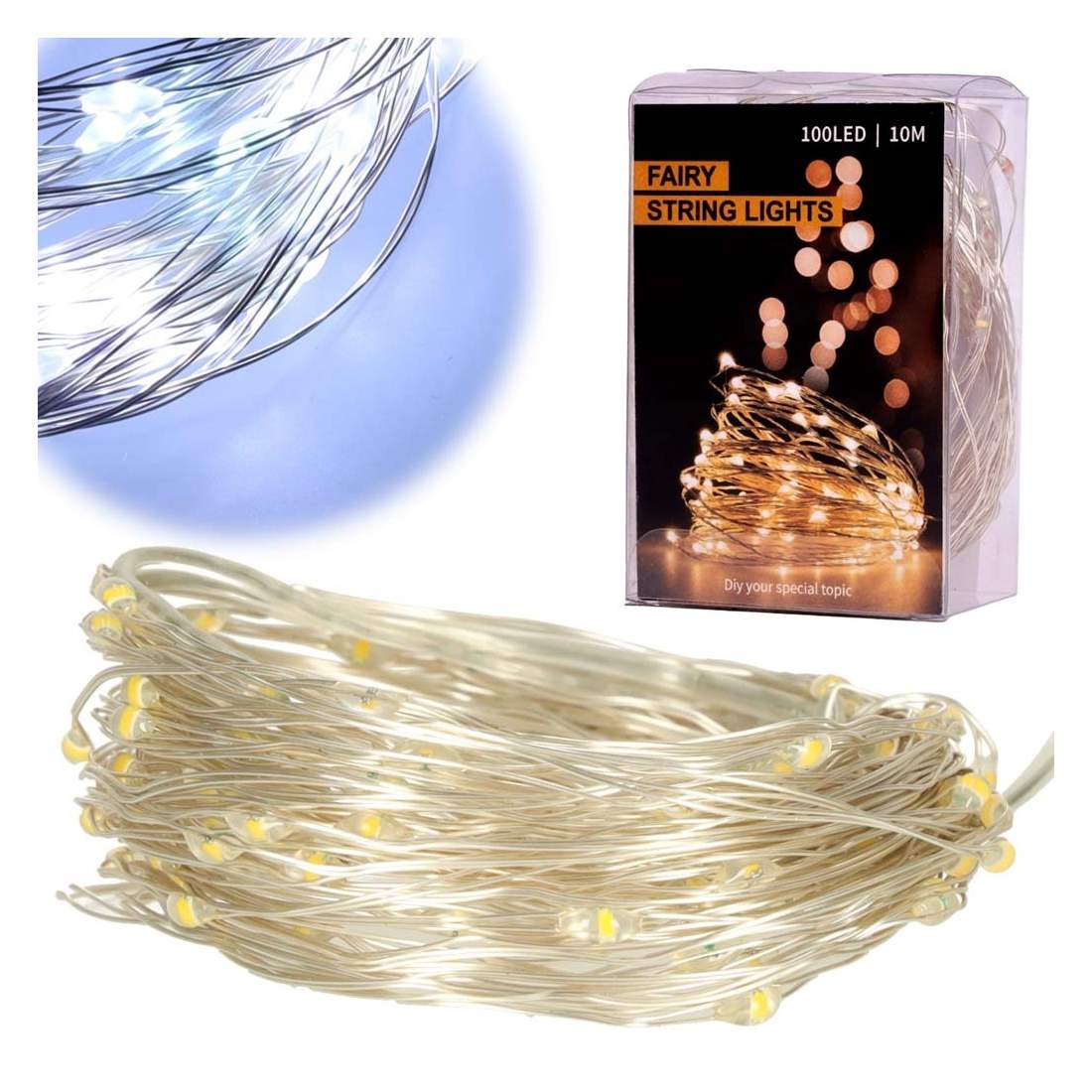 Batteridrevne LED-lys 10m kølig hvid 100 stk