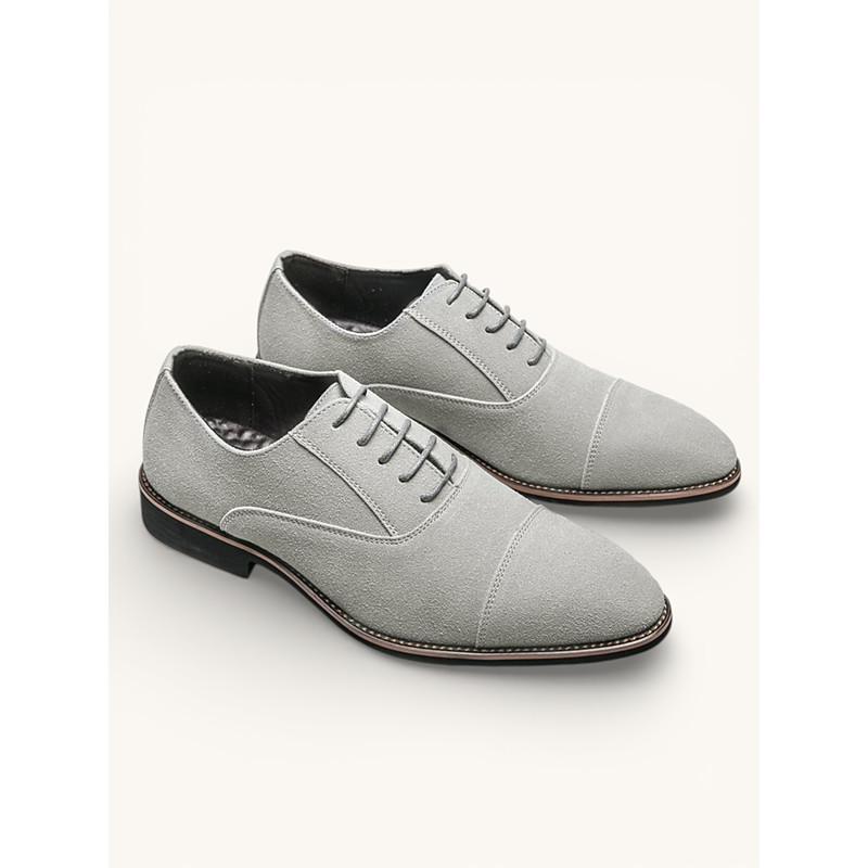 Men's Grey Suede Oxford Shoes – Classic Cap Toe Lace-Up Dress Shoes for Business, Weddings Formal Events