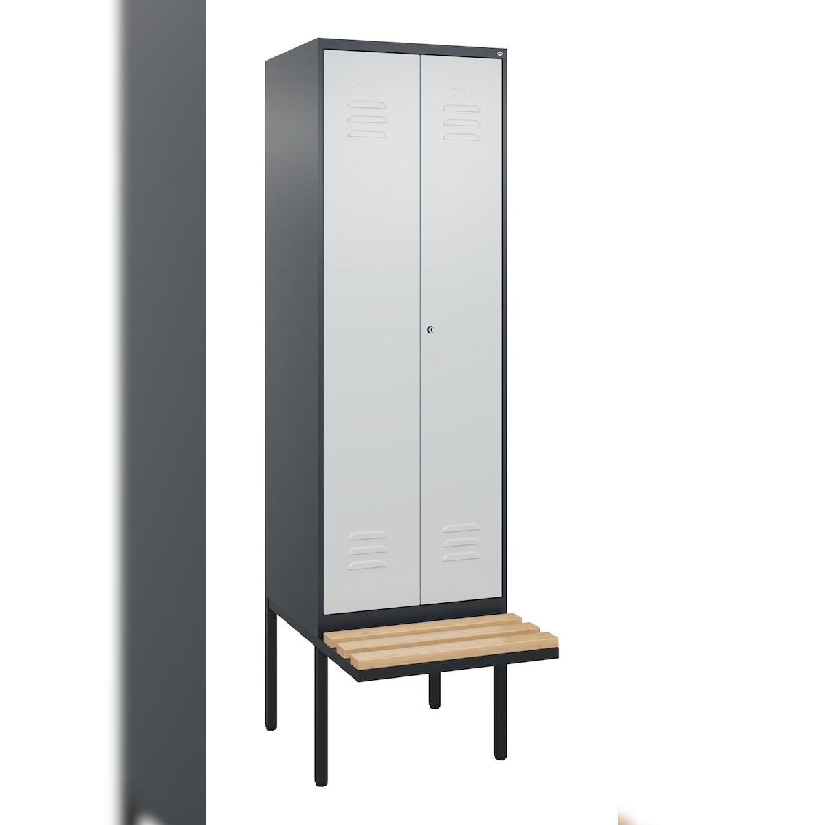 C+P Doppel-Spind Classic PLUS, schwebender Sitzbank aus Buche 2 Abteile, HxBxT 212x60x82cm, Zylinderschloss, Anthrazit/Hellgrau von PROREGAL