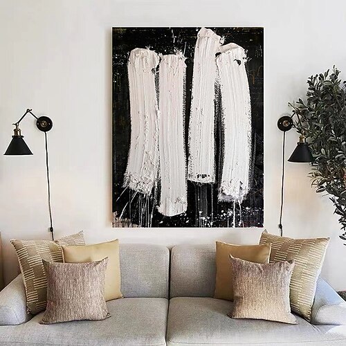 Dipinto a olio fatto a mano su tela, decorazione da parete, semplice, astratto, bianco e nero, con texture floreale, per la decorazione della casa, dipinto appeso su telaio teso/dipinto arrotolato