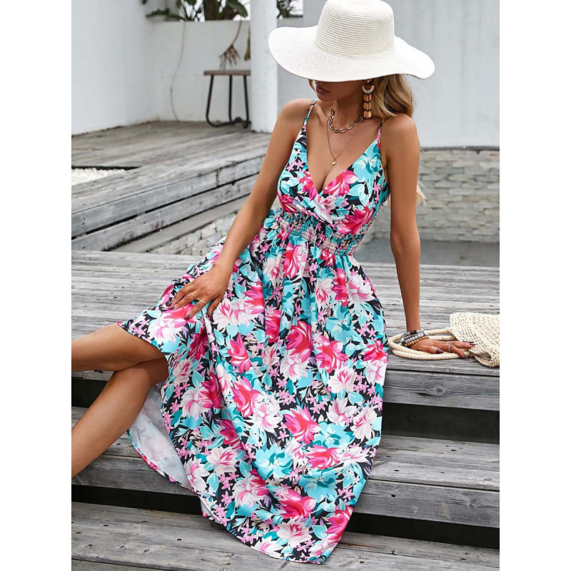 Women's Midi Dress Casual Dress A Line Dress Slip Dress Stylish Casual Vacation Daily Regular Fit Floral Sleeveless Strap Light Green Navy Blue Summer